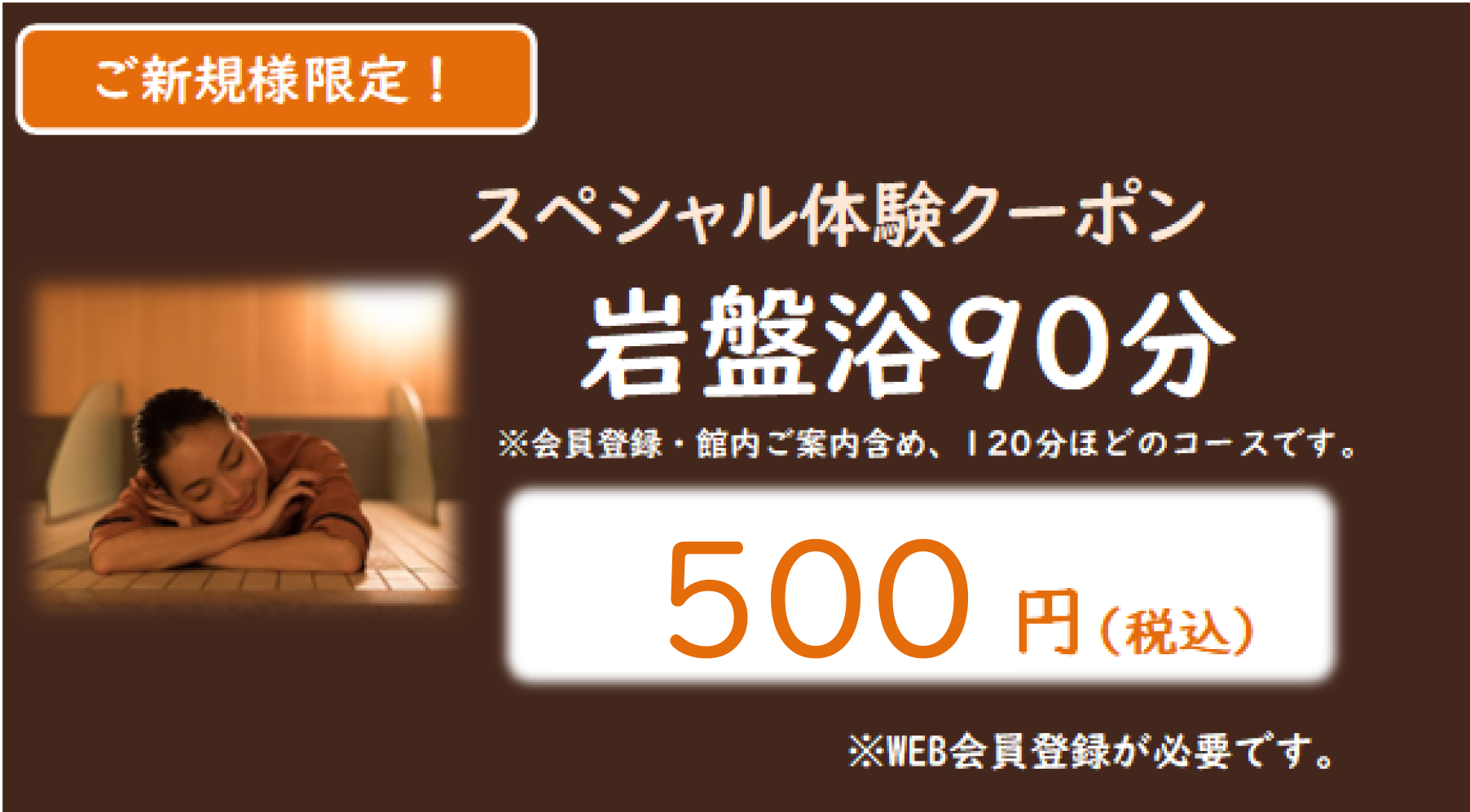 ※岩盤浴90分と会員登録・館内ご案内の約120分